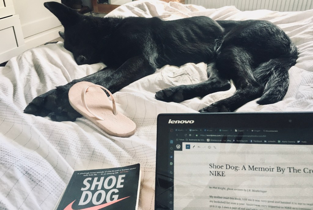 My mother read this book, told me it was very good and handed it to me to read. It was sitting on my bookshelf for over a year. Since I was very impartial to NIKE as a company, I had no motivation to pick it up. I own a pair of red and white Nike Airs, but they are a bit too tight around my toes so I never went running in them; they are just fashion. However, recently we’ve had a lot of glorious sunshine, so reading in the garden in the morning sun has become my ritual, and because I have this odd fear my Kindle Fire will overheat, Shoe Dog came off the shelf.